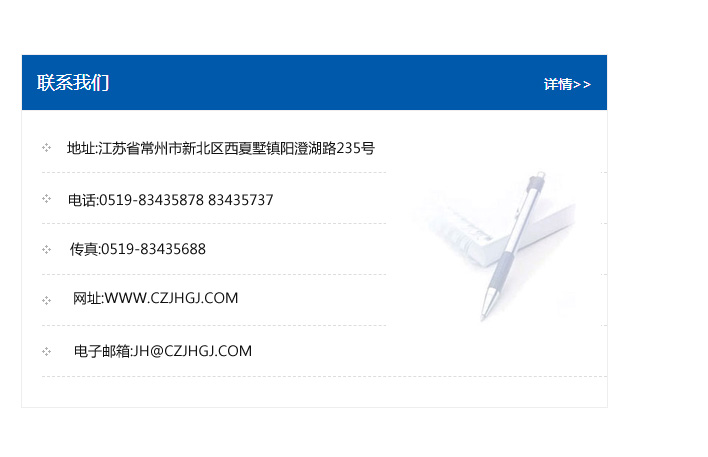 地址:常州市新北區友邦商務大廈1幢16、17層  電話:0519-85101652  傳真:0519-85112595  郵編:213022  網址:www.cz-jiayue_cn.c-doll.com  郵箱:xiajifengaa@163.com